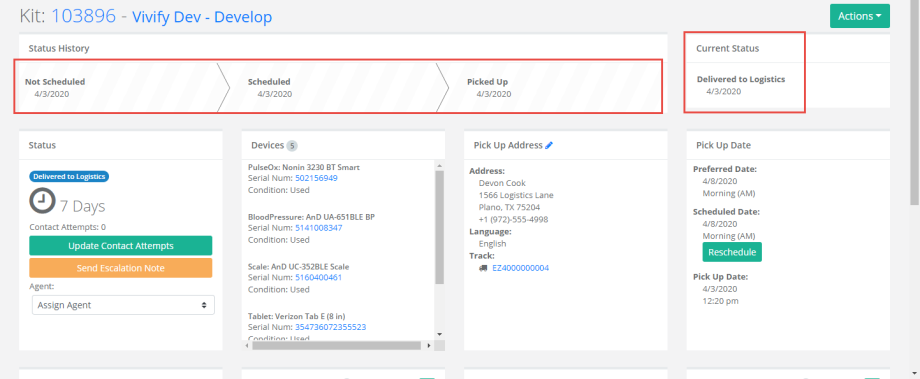 Example: Kit Device Replacement Messaging on Fulfillment Detail Page in Logistics Portal