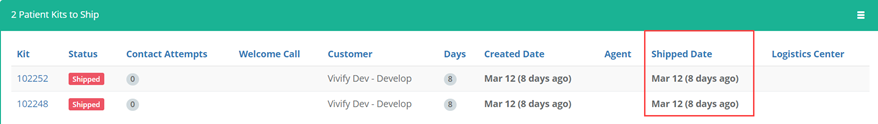 The Kit Ship page has a new filter category for Shipped Date to help Logistics find kits faster.