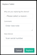 - In the New Device box, scan or type the serial number of the new device.