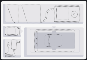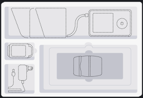 - Place the piece of 1/2” foam on top of the tablet and devices. Make sure the handle cutouts are facing towards the front of the box.